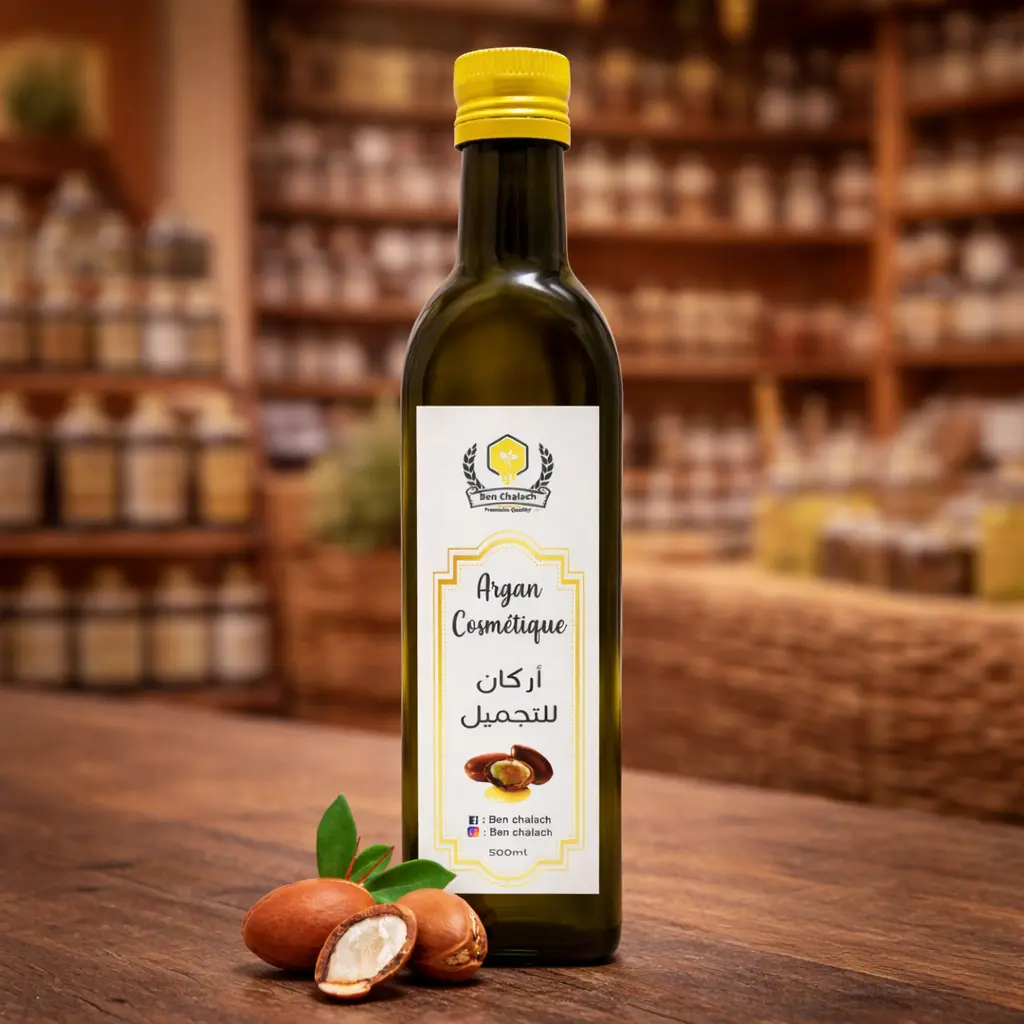 زيت الأركان للتجميل الطبيعي 100%، مستخرج من أجود ثمار شجرة الأركان المغربية. غني بفيتامين E ومضادات الأكسدة لترطيب البشرة، تقوية الشعر، علاج التقصف، وتنعيم الوجه بشكل طبيعي. مناسب لجميع أنواع البشرة والشعر. احصلي على عناية يومية فاخرة بنتائج واضحة خلال أيام.